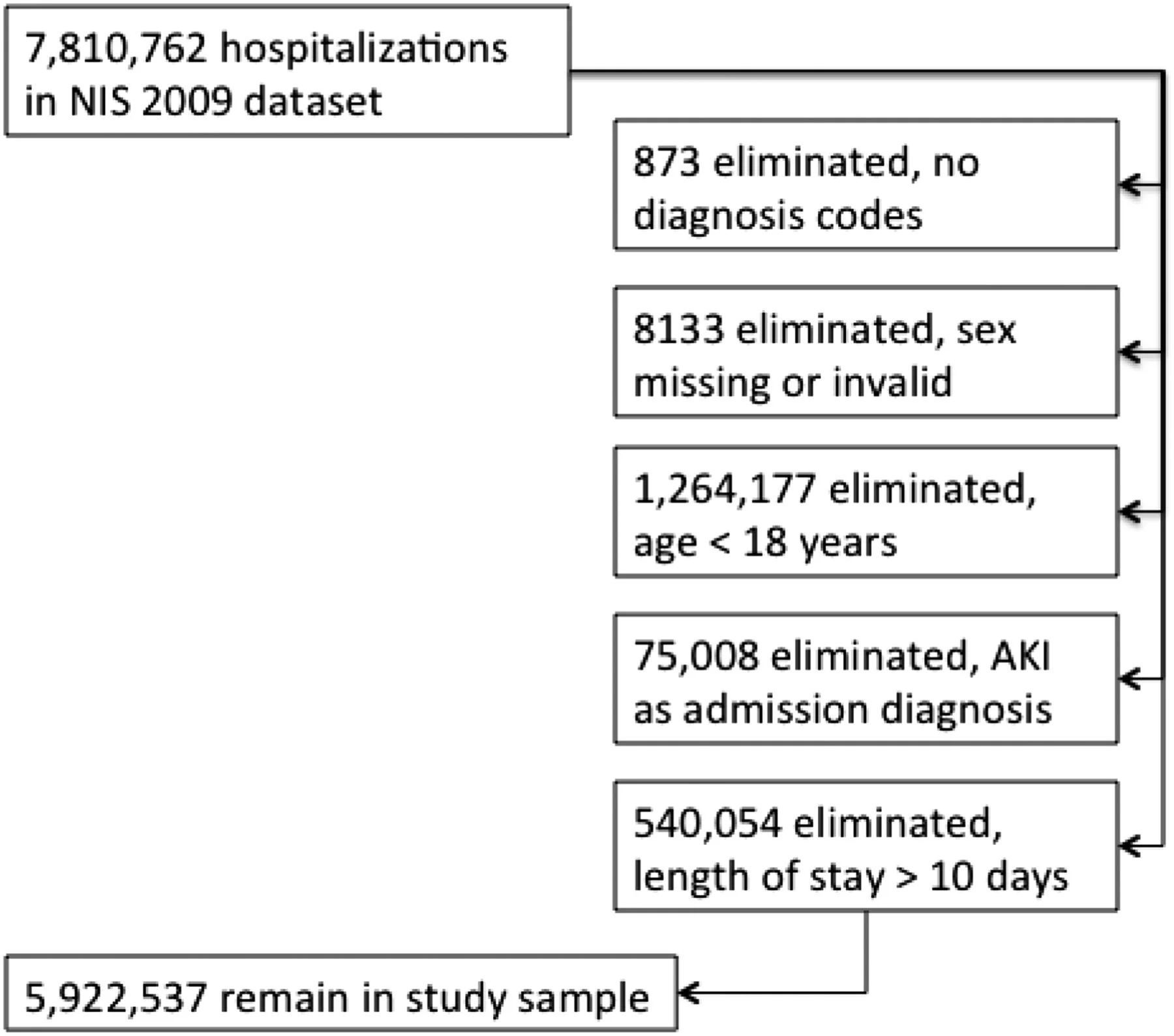 Inclusion Criteria: 5,922,537 patients ≥18 years of age were included with an admitting diagnosis other than AKI and ≤10 days of hospitalization.