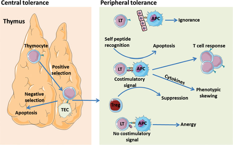 Figure 1. Central and peripheral tolerance, from Boucault, et al. Frontiers in Transplantology. InTech, 2016.