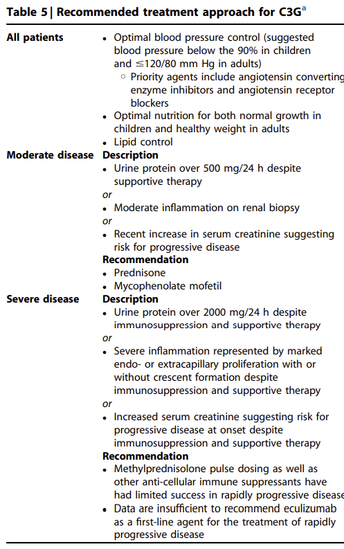 Recommendations for treatment of C3G from Goodship THJ et al, KI 2017