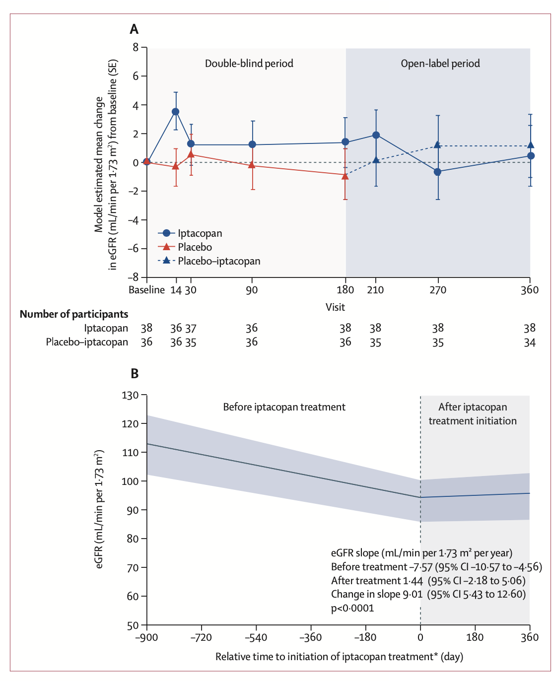 Patients with eGFR <30ml/min/1.73m2 or heavy chronic scarring were largely excluded. Whether iptacopan can alter the trajectory in late-stage disease is unknown.