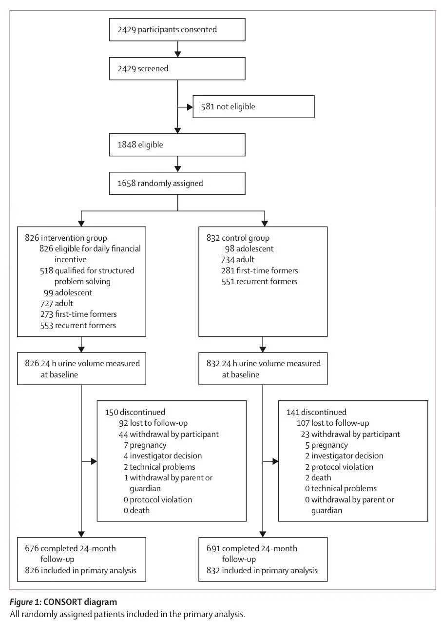 It showed that even an intensive, multi-layered, evidence-based behavioral intervention cannot increase hydration enough to prevent stones.