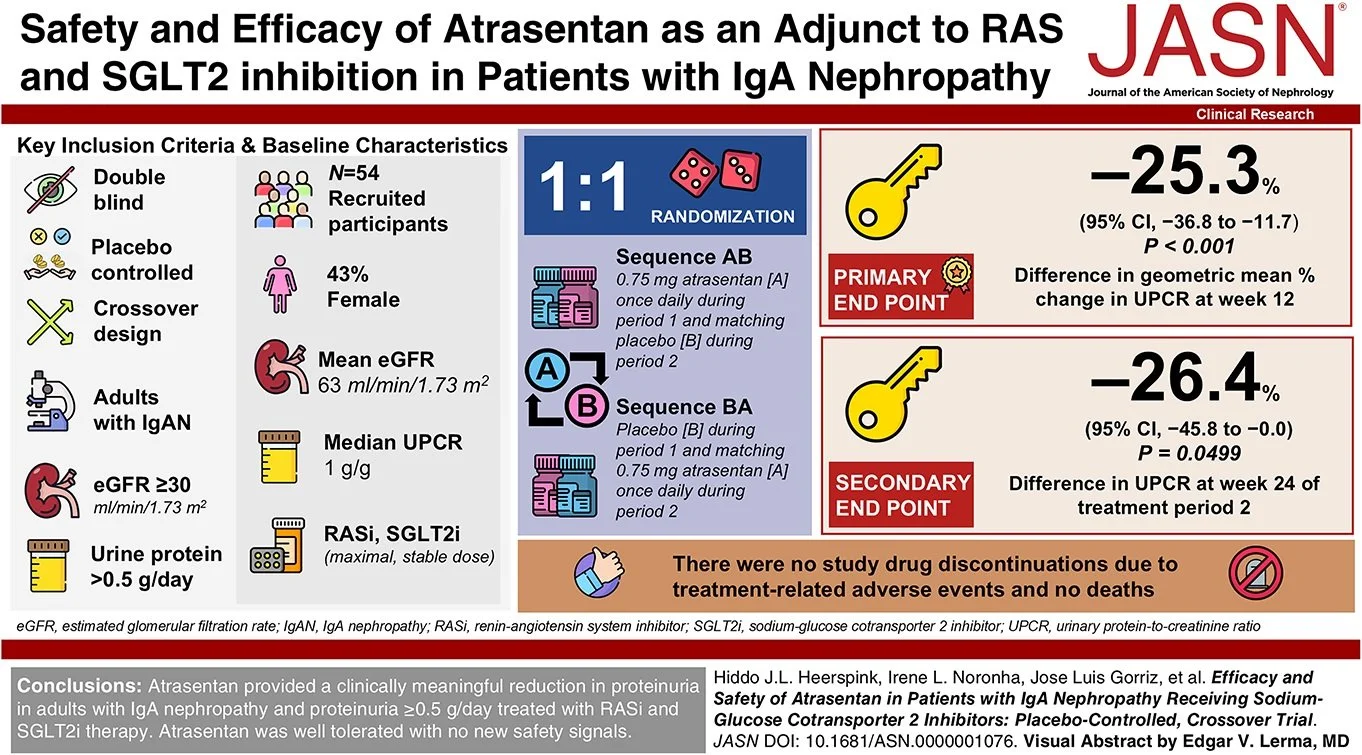 The Assist trial (Efficacy and Safety of Atrasentan in Patients with IgA Nephropathy Receiving Sodium-Glucose Cotransporter 2 Inhibitors: Placebo-Controlled, Crossover Trial; Heerspink et al, JASN 2026)