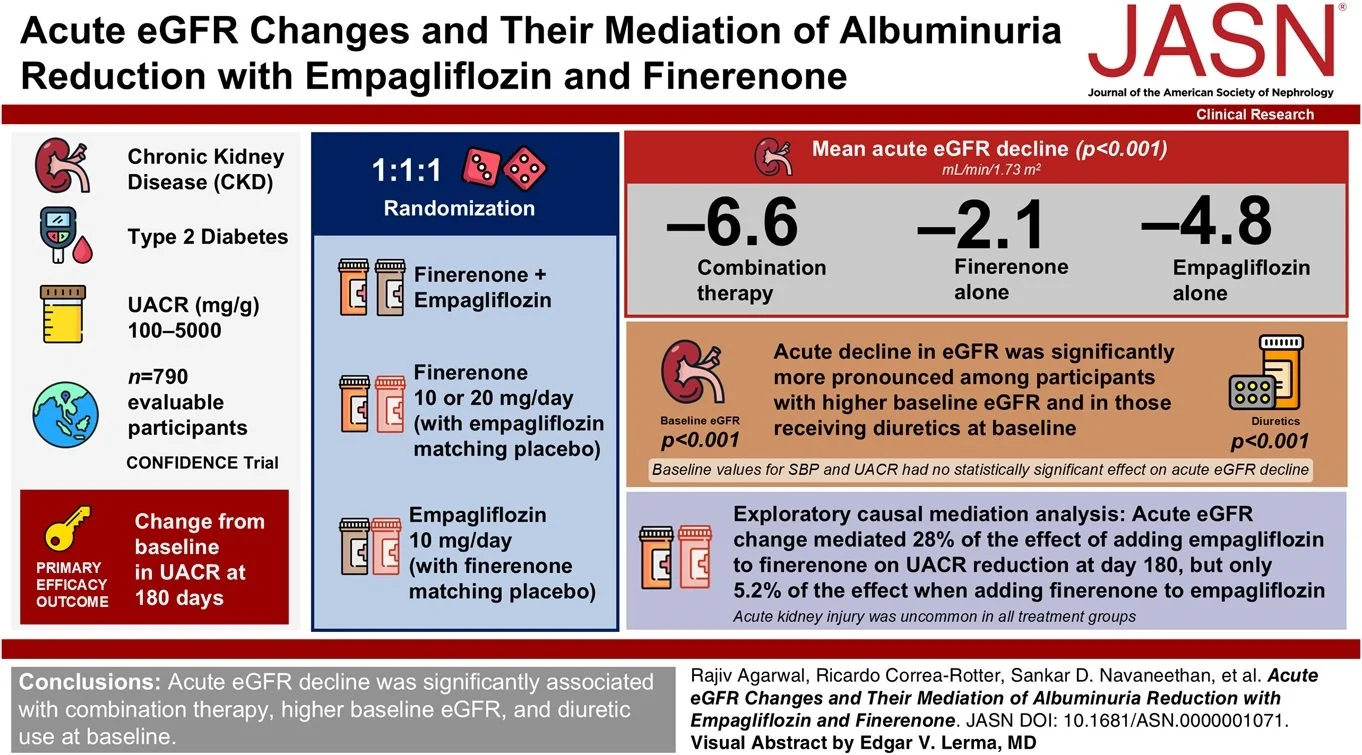 Acute eGFR Changes and Their Mediation of Albuminuria Reduction with Empagliflozin and Finerenone (Agarwal et al, JASN, 2026)