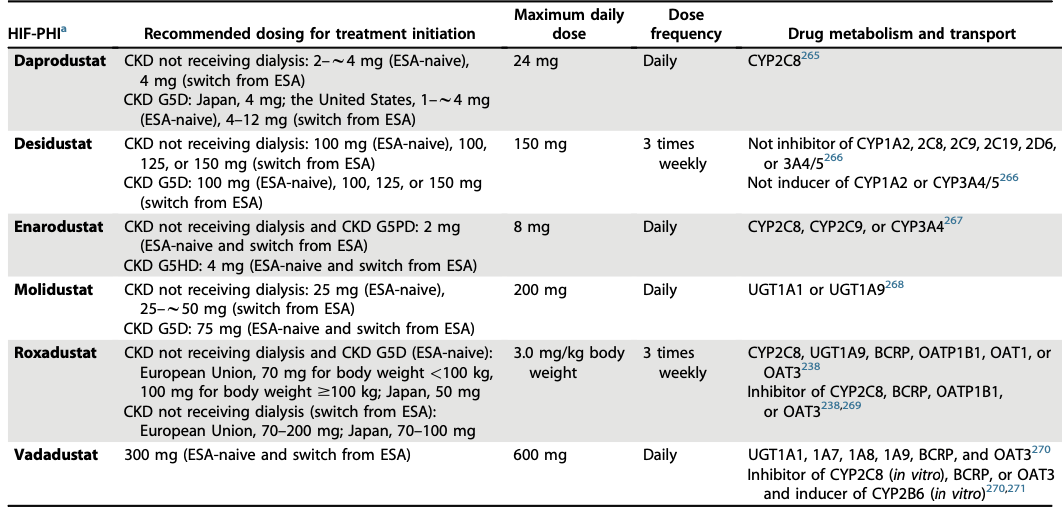 Table 8. HIF-PHI agents available as of October 2024 from 2026 Clinical Practice Guideline for the Management of Anemia in Chronic Kidney Disease