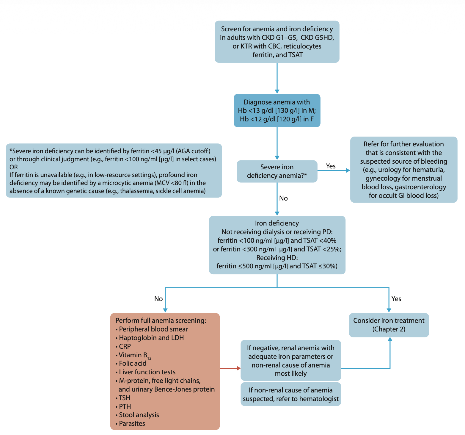 Figure 6 Flowchart of different steps to follow when anemia and CKD, from 2026 Clinical Practice Guideline for the Management of Anemia in Chronic Kidney Disease