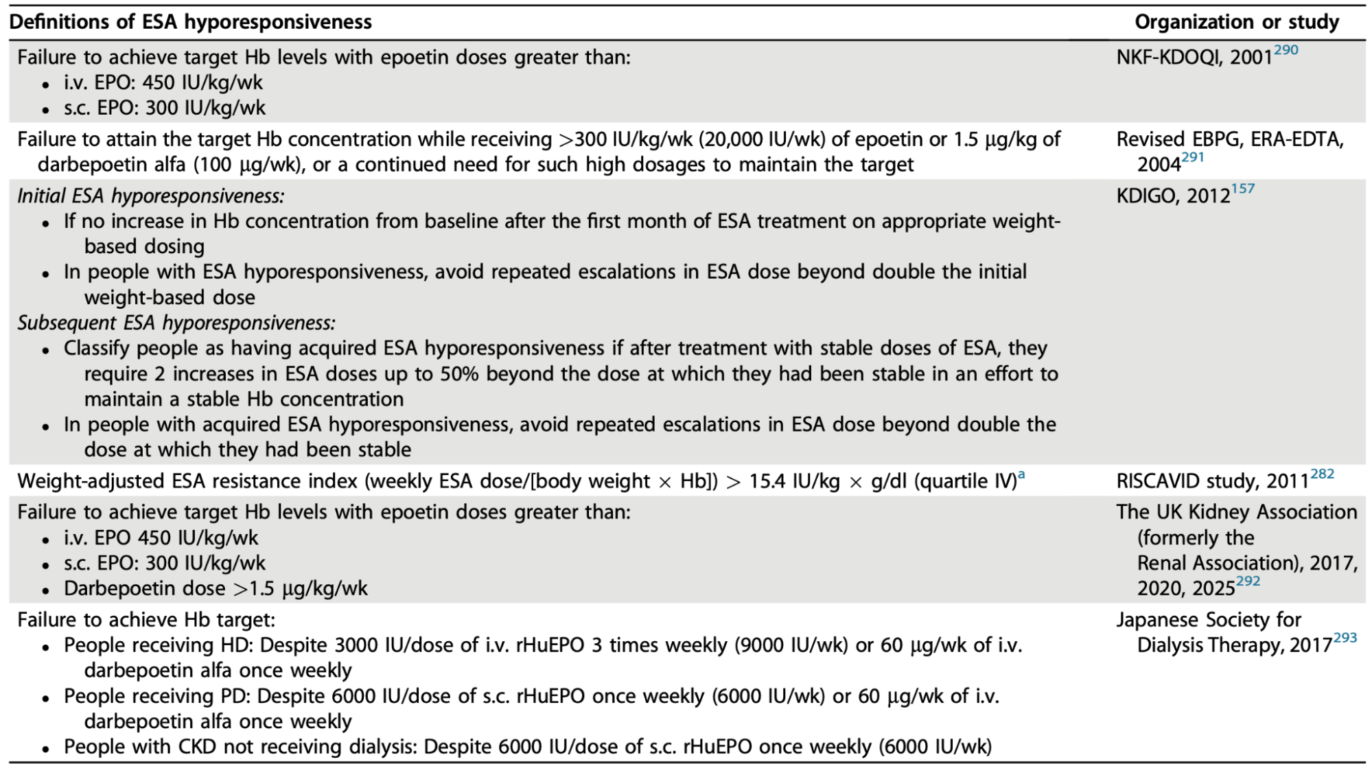 Table 10 Definitions of Hyporesponsiveness to ESA from 2026 Clinical Practice Guideline for the Management of Anemia in Chronic Kidney Disease