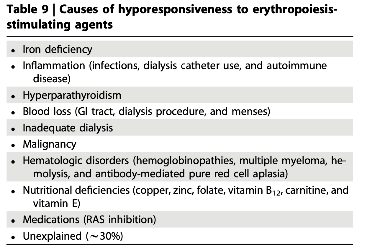 Table 9. Causes of Hyporesponsiveness to ESA from 2026 Clinical Practice Guideline for the Management of Anemia in Chronic Kidney Disease
