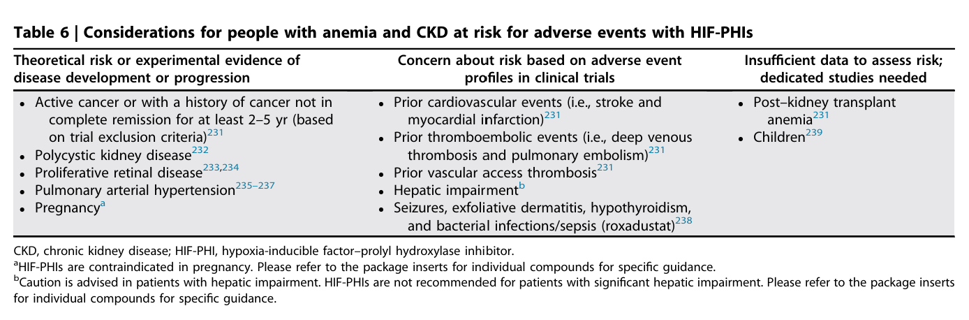 Table 6. Considerations for HIF-PHI in CKD 2026 Clinical Practice Guideline for the Management of Anemia in Chronic Kidney Disease