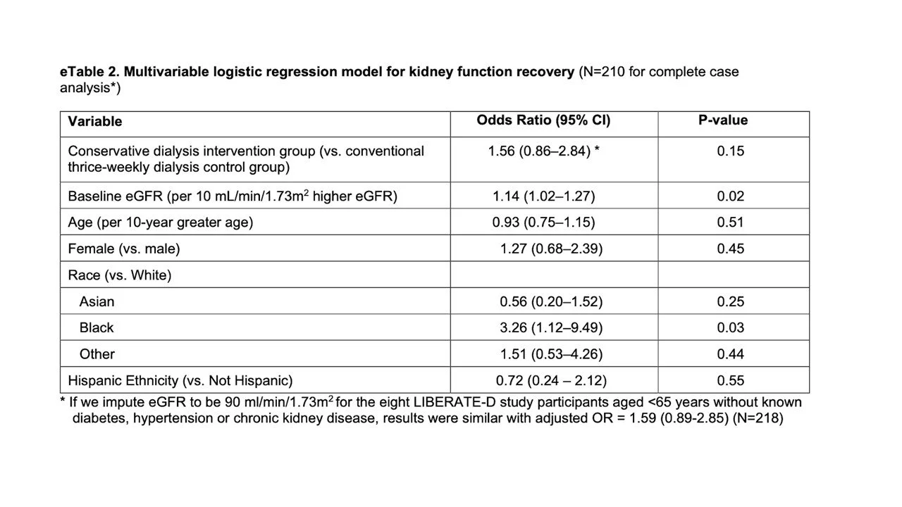 eTable 2. Multivariable logistic regression analysis for kidney recovery from Liu et al, JAMA 2025