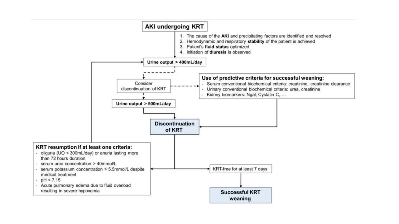 A decision algorithm for weaning from RRT from Klouche et al, J Clin Med 2024